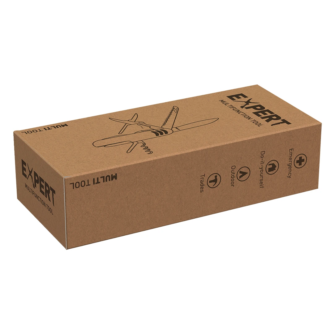 EXPERT je višenamenski nož sa čak 12 funkcija, dizajniran kao praktično i pouzdano rešenje za širok spektar svakodnevnih i outdoor aktivnosti. Zahvaljujući bogatom setu alata, pogodan je za upotrebu u kuhinji, ribolovu, kampovanju, kao i za sitne popravke u pokretu. Kombinacija elemenata od nerđajućeg čelika i drške od aluminijuma daje nožu moderan izgled, uz izdržljivost i sigurnost tokom korišćenja. Kao najekonomičniji model u ponudi, EXPERT predstavlja odličan izbor za masovne promotivne kampanje, bez kompromisa u funkcionalnosti. Proizvod dolazi u poklon pakovanju, spreman za poslovnu i promotivnu upotrebu.